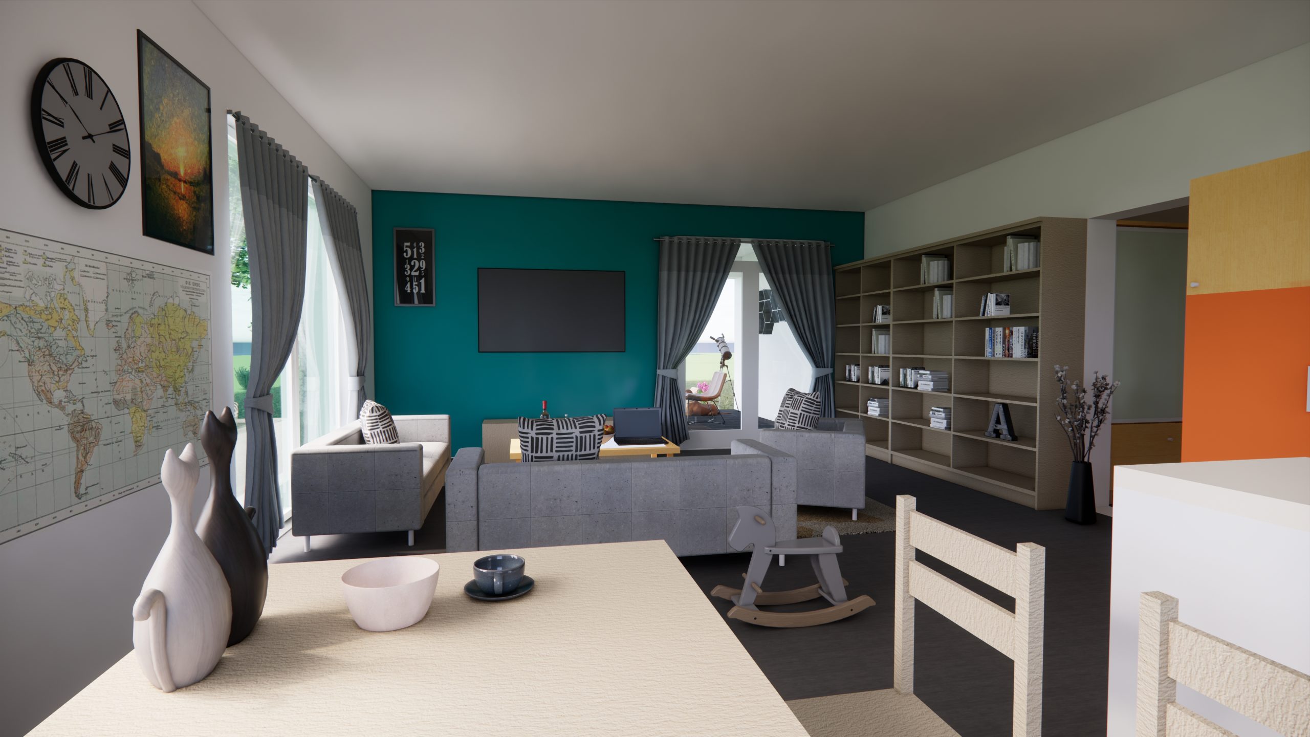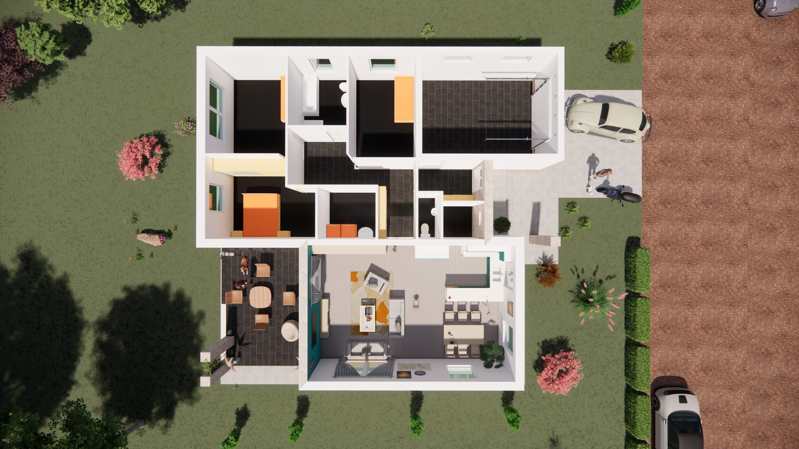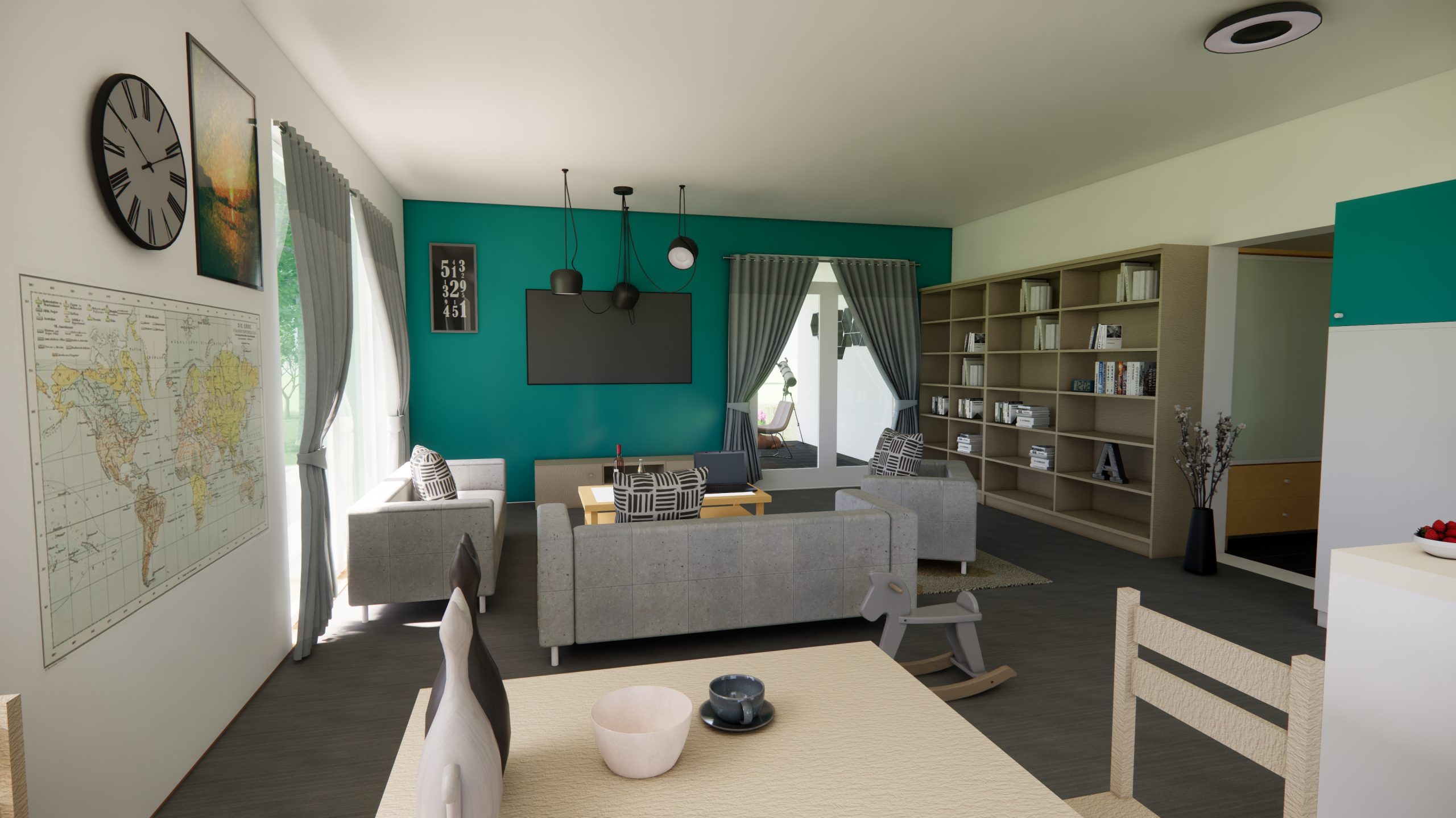 Ez a 113,56 m² nettó hasznos alapterületű, egyszintes családi ház modern kialakításával (nappali + 3 szobájával) és praktikus belső elrendezésével kínál kényelmes életteret. A tágas nappalihoz három külön nyíló szoba társul, míg a fürdőszobában elhelyezett WC mellett egy különálló mellékhelyiség is biztosítja a kényelmet. A 23,55 m²-es fedett terasz kiváló helyszín a szabadtéri pihenéshez, a 22,07 m²-es garázs pedig védett parkolást tesz lehetővé. Az otthon alacsony üzemeltetési költségéről hőszivattyús fűtés, napelemes rendszer energiatárolóval, valamint a Loxone intelligens otthonrendszer támogatja.